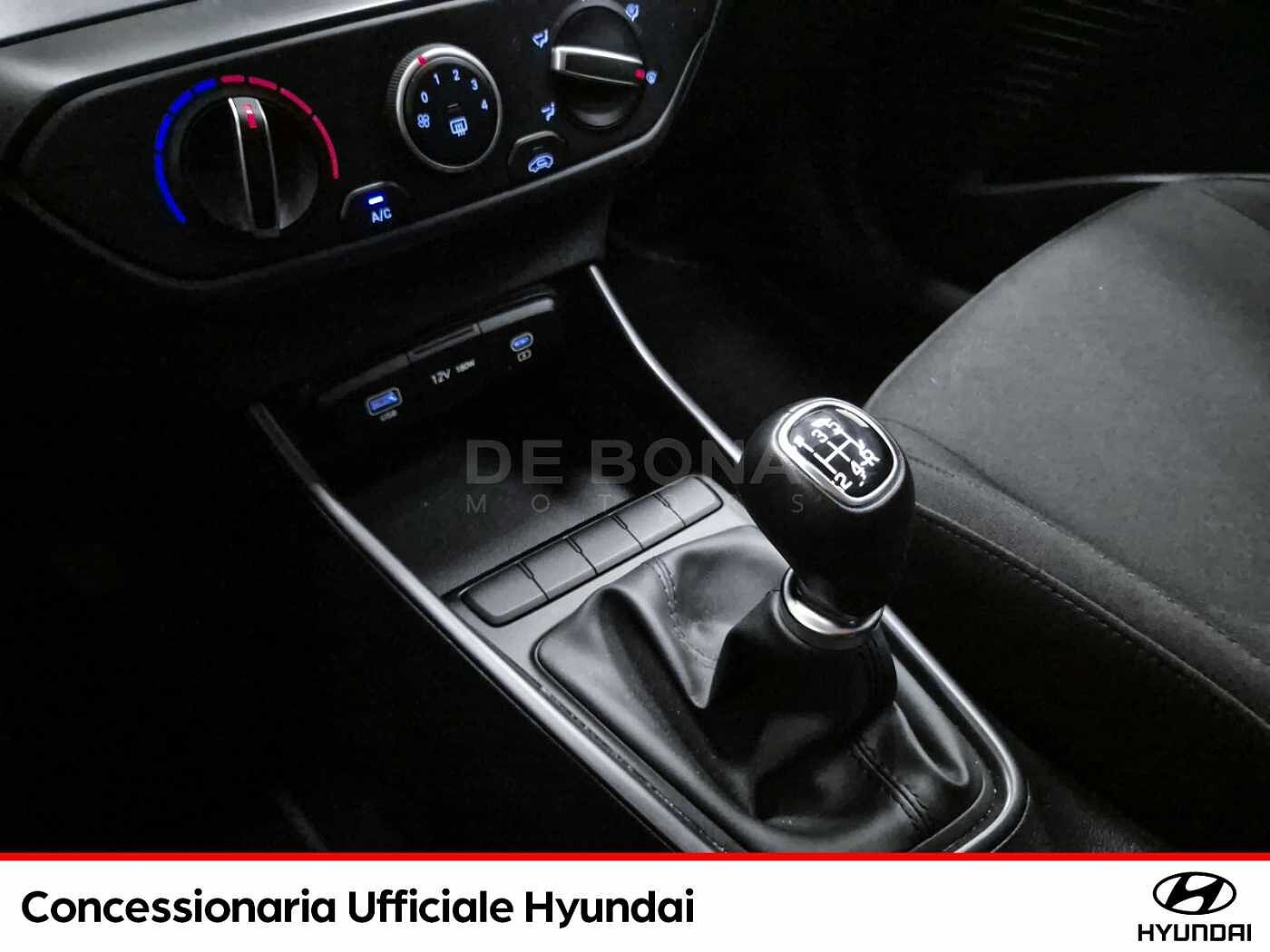 2 Airbag a tendina, 2 Airbag anteriori, 2 Airbag laterali, A.B.S., Altoparlanti anteriori e posteriori, Alzacristalli elettrici anteriori con funzione Up amp; Down Safety per guidatore, ALZACRISTALLI ELETTRICI POSTERIORI, ANTIFURTO CON RADIOCOMANDO A DISTANZA E IMMOBILIZER, Bluetooth con riconoscimento vocale, Cerchi in lega da 16quot; con pneumatici 195/55 R16, CLIMATIZZATORE MANUALE, Cluster supervision da 10.25quot; TFT LCD, Comandi audio al volante, Cruise Control, E-Call, E.S.C., Freni a disco anteriori, GARANZIA 5 ANNI / KM ILLIMITATI, Hyundai Smart Sense, Indicatori Di Direzione Integrati Negli Specchietti, Kit Gonfiaggio Pneumatici, Luci diurne e di posizione a LED, Multi Collision Brake (M.C.B.), Rear Occupant Alert (R.O.A.), Sedile guidatore regolabile in altezza, Sedile Posteriore Abbattibile Con Modulo 60:40, Sedili rivestiti in tessuto, Sensore crepuscolare, Sensori di parcheggio posteriori con retrocamera, Sistema di assistenza alla partenza in salita (H.A.C.), Sistema di assistenza anti-collisione frontale con riconoscimento veicoli, pedoni e cicli (F.C.A.), Sistema di gestione automatica dei fari abbaglianti (H.B.A.), Sistema di mantenimento al centro della corsia (L.F.A.), Sistema di navigazione con display touchscreen da 10.25quot; con connettività Apple CarPlay e Android Auto, Sistema di riconoscimento dei limiti di velocità (I.S.L.A.), Sistema di rilevamento della stanchezza del conducente (D.A.W.), Sistema ISG idle stop amp; go system, Specchietti retrovisori regolabili e riscaldabili elettricamente, T.P.M.S., USB per la ricarica, Volante regolabile in altezza e profondita, Volante rivestito in pelle