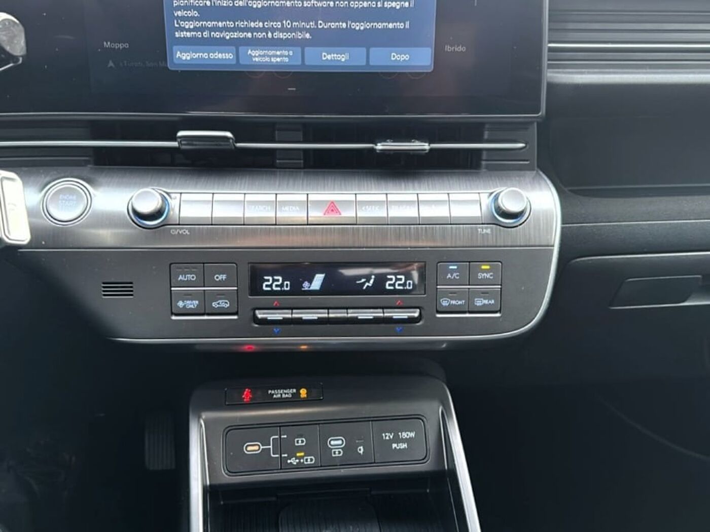 La vettura è completa nella dotazione optional di 2 Airbag a tendina, 2 Airbag anteriori, 2 Airbag laterali, 4 Usb-C presa e Presa ausiliaria 12V (plancia), 5 Anni Di Garanzia / Km Illimitati, 6 Speakers, Airbag centrale, Alzacristalli elettrici anteriori e posteriori con funzione safety (anteriori), Antifurto con immobilizer, Attacchi ISOFIX, Barre portatutto longitudinali, Bluetooth con riconoscimento vocale, Bracciolo anteriore, Caricatore wireless per smartphone, Cerchi in lega leggera da 18'' con pneumatici 215/55 R18, Climatizzatore automatico, Cluster Supervision da 12.3'' TFT LCD, Comandi audio al volante, Drive Mode Select, Freno di stazionamento elettrico, Highway Driving Assist (H.D.A.), Hyundai Smart Sense, In Cabin Camera (I.C.C), Indicatori di direzione a LED integrati negli specchietti, Kit Gonfiaggio Pneumatici, Led orizzontale, Luci interne a led e luci ambiente, Maniglie e specchietti retrovisori in tinta con la carrozzeria, Modanature e passaruota neri, Paddle al volante, Poggiatesta anteriori regolabili in altezza, Radio RDS + DAB, Rear Occupant Alert (R.O.A.), Retrovisore interno elettrocromico, Sedile guidatore con supporto lombare elettrico, Sedile guidatore regolabile in altezza, Sedile posteriore abbattibile con modulo 40:20:40, Sedili rivestiti in tessuto, Sensore crepuscolare e sistema di gestione automatica dei fari abbaglianti (H.B.A.), Sensori di parcheggio anteriori e posteriori + retrocamera, Sistema di assistenza alla partenza in salita (H.A.C.), Sistema di assistenza anti-collisione frontale con riconoscimento veicoli, pedoni, cicli e junc, Sistema di controllo della stabilità (E.S.P.), Sistema di frenata anti bloccaggio (A.B.S.), Sistema di mantenimento al centro della corsia (L.F.A.), Sistema di monitoraggio pressione gomme (T.P.M.S.), Sistema di navigazione con display touchscreen TFT LCD da 12.3'' con Connettività Apple CarPlay, Sistema di riconoscimento attivo dei limiti di velocità (I.S.L.A.), Sistema di rilevamento della stanchezza del conducente (D.A.W.), Smart Cruise Control, Smart key & Start Button, Specchietti retrovisori regolabili e riscaldabili elettricamente, Vetri posteriori oscurati, Volante regolabile in altezza
